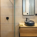 - Grifo de ducha empotrado 1 vía con placa metálica extraplana, instalación sencilla por su cuerpo compacto, sistema S2 de ahorro de agua del 50% y limitador de temperatura.