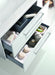 2x Mueble de baño suspendido de 2 cajones de extracción parcial con cierre amortiguado de guías INDAUX e interiores acabado gris. Tirador metálicos. Frente y laterales fabricados en tablero de partículas laminado de 16 mm.