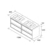 Mueble de baño ATTILA 140 cm de Salgar está formado por dos muebles suspendidos con dos cajones con cierre amortiguado, lavabo de carga mineral blanco doble con senos integrados. Fondo del mueble 45 cm.