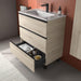 Mueble de baño BEQUIA fabricado por Salgar. La serie BEQUIA lleva a la mínima expresión el mueble de baño. La ausencia de tiradores y de elementos decorativos, hace que sea un diseño limpio y atemporal. Caracterizada por su sencillez y funcionalidad, nos ofrece muebles de tres cajones en diferentes acabados y medidas, adaptándose al espacio de nuestro baño.
