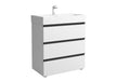 - Mueble de baño 3 cajones con cierre amortiguado para maximizar el espacio de almacenaje. Patas de 10cm para mejor limpieza debajo del mueble. Interiores: acabado Gris Onix de fácil limpieza. Tirador tipo uñero integrado en el frente del mueble, no se ensucian. Fabricados en MDF (clase E-1) con cantos en PVC resistentes a la humedad del baño.
