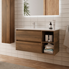 SALGAR BEQUIA Mueble de Baño con Lavabo 2 Cajones 2 Huecos Derecha Nogal Maya