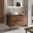 SALGAR BEQUIA Mueble de Baño con Lavabo de Posar y Encimera 2 Cajones 1 Puerta Reversible Nogal Maya