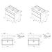 Mueble de baño suspendido de 2 cajones con cierre amortiguado con interiores acabado gris antracita onix. Tirador tipo uñero integrado en el mueble. Frente y laterales fabricados en tablero de partículas laminado de 16 mm (clase E-1) con cantos PVC.