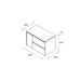 Mueble de baño suspendido de 2 cajones de extracción parcial con cierre amortiguado de guías HETTICH y 1 puerta con interiores acabado gris onyx antracita. Tirador tipo uñero integrado en el mueble. Frente y laterales fabricados en tablero de partículas laminado de 16 mm (clase E-1) con cantos PVC + cola PUR.