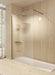 Mampara fija para platos de ducha, con perfil de aluminio a la pared y brazo de sujeción extensible.