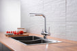 Grifería monomando de cocina, osmosis, cromo.Maneta distribuidora de osmosis incorporada en el caño.Cartucho ECOFLOW, ahorro hasta un 50% de agua.Latiguillos de 3/8 - 50 cm.