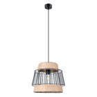 La lámpara BRILO deslumbra con su diseño. Los barras de acero curvadas en color negro se combinan sutilmente con elementos de madera en tonos naturales. Esta combinación poco común se ajusta a las últimas tendencias y hace que la iluminación sea simplemente encantadora.