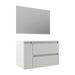 Mueble de baño suspendido con dos cajones y una puerta de la serie BOX de Visobath. Acabado lacado blanco nieve brillo.