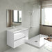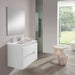 Mueble de baño suspendido con dos cajones y una puerta de la serie BOX de Visobath. Acabado lacado blanco nieve brillo.