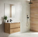 Mueble de baño suspendido de fondo reducido (fondo 40 cm) con dos cajones de la serie BOX de Visobath. Acabado laminado en Roble Costa.