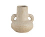 Jarrón de cerámica beige con asas y textura rugosa. Su forma orgánica y acabado artesanal lo hacen ideal para decorar cualquier estancia con un toque mediterráneo. Se puede combinar con otros accesorios de la colección. No apto para contener agua en su interior.