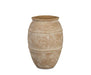 Este jarrón decorativo tiene forma de ánfora y delicados grabados. Disponible en dos tamaños para poder combinar las dos piezas. Color beige con acabado natural y estética mediterránea. No apto para contener agua.