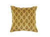 Este cojín forma parte de una serie de tres cojines de terciopelo color amarillo mostaza con motivos florales.