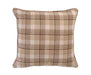 Este cojín cuadrado tiene un estampado tartán marrón de estilo escocés. Su patrón tradicional y su textura suave crean un ambiente confortable y sofisticado. La funda es de poliéster y el relleno de plumas. Lavar a máximo 30 °C, sin planchar y sin usar secadora.