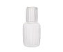 El conjunto incluye un vaso de cristal que funciona ingeniosamente como tapón de la jarra. Su tamaño compacto la convierte en la opción ideal para la mesita de noche o para el escritorio de trabajo. Solución práctica y sofisticada para el hogar u oficina.