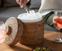 Este cubitera de ratán es el accesorio de mesa imprescindible de todo terraceo. Ideal para colocar los cubitos y mantenerlos frescos durante horas, listos para enfriar la copa en cualquier momento. Incorpora unas pinzas de metal y un soporte para sujetarlas y la tapa permite conservar mejor la temperatura fría en el interior. Con interior de plástico para vaciarlo y limpiarlo cómodamente y sin dañar la fibra natural del ratán.