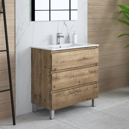 SEVILLA mueble de baño con lavabo fabricado en la Unión Europea por Aquore. Disponible en 3 medidas (60, 80 y 100 cm) y en 2 colores (blanco brillo y roble ostippo). Diseño sencillo y funcional para adaptarse a cualquier espacio.