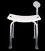 Asiento ABS blanco. Patas antideslizantes. Regulable a 6 alturas. Patas en aluminio numeradas. Hendidura para colocar el mango de ducha.(mango ducha foto no incluido). Peso máximo 110 kg. Se suministra en caja con asa.