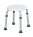Asiento con base circular ABS blanco. Patas antideslizantes. Regulable a 6 alturas. Patas en aluminio numeradas. Peso máximo 100 kg. Se suministra en caja con asa.