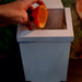 Fabricado en inox. Acabada en blanco. Ideal para poner en la cocina como papelera de residuos orgánicos. Se puede poner sobre la encimera dado el tamaño. También para el baño.