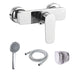 - Incluye mango ducha Júcar 1 posición, flexo ducha 1,50 a 2m y soporte compacto articulado