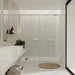 La mampara para plato de ducha de la serie NOEL de Bathme está compuesta por dos hojas fijas y dos puertas correderas, sin guía inferior que facilita la limpieza.