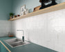 Azulejo porcelánico, formato 14,7x14,7 cm, en una tonalidad blanca con acabado ultragloss y aspecto destonificado.