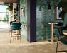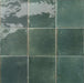 Azulejo porcelánico, formato 14.7x14.7 cm, en una tonalidad verde con acabado ultragloss y aspecto destonificado.