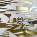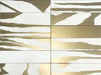 Juego de 12 azulejos en formato rectangular (7,5x30 cm), en color blanco y dorado que, destaca por la combinación de un color con los destellos brillantes del PVD.