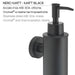Dosificador para jabón de poliresina negra con válvula negra mate con acabado soft touch. Diseñado por Andrea House. Medidas:6,5x18,5 cm.