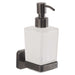 Dosificador para jabón de poliresina negra con válvula negra mate con acabado soft touch. Diseñado por Andrea House. Medidas:6,5x18,5 cm.