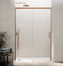 Mampara de ducha frontal transparente con puerta corredera, perfilería minimalista en aluminio cobre con cristales templados de 6mm y tratamiento antical. Doble rodamiento en nylon silencioso con diseño actual sin perfilería inferior. Medidas a elegir. Entrega inmediata. Altura 196 cm. Garantía 3 años. Mampara reversible.
