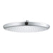 Lluvia Cabezal Ø 250 mm Superficie totalmente cromada Rótula orientable con ángulo de ± 10º Conexión 1/2" GROHE Water Saving limitador de caudal 9 l/min GROHE DreamSpray distribución perfecta del agua por todo el cabezal GROHE Long-Life acabado duradero Sistema antical SpeedClean Conducto interno del agua protegido para mayor durabilidad Edición Profesional