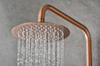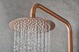 Imex en acabado oro rosa cepillado, barra de ducha extensible, cuerpo de la griferia de latón oro rosa cepillado, rociador extraplano Ø20 y antical, cartucho cerámico de 35mm, incluye flexo PVC y mango.
