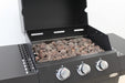 La superficie de asado de la barbacoa Gas Cazorla Roca de Lava es de 58x36,5 cm, brindándote un amplio espacio para preparar una variedad de alimentos a la parrilla. Además, cuenta con una bandeja de acero inoxidable diseñada especialmente para colocar rocas de lava, las cuales distribuyen el calor de manera uniforme y mejoran el sabor de tus comidas.