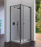 KASSANDRA PIVOT Mampara Frente de Ducha Pivotante+Fijo Negro Transparente