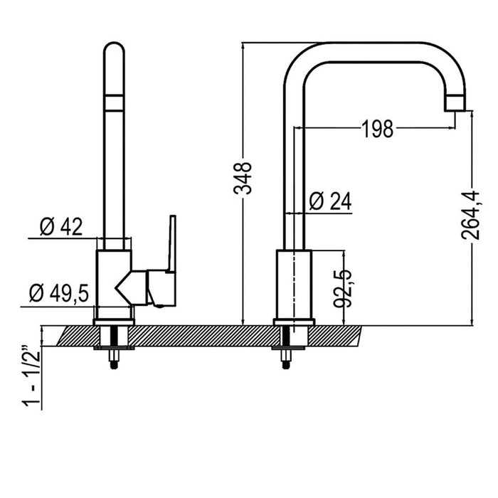 Ver todos los detallesGrifo monomando de la serie TITANIUM de Ramon Soler para fregadero vertical con caño cisne. Certificación AENOR Cartucho cerámico Ø35 mm. S...