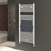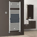 Radiador secatoallas para baño para su conexión a la red de calefacción de agua. Este tipo de radiadores sirven tanto para calentar el baño como para secar o calentar las toallas. El sistema de funcionamiento es muy sencillo, se conecta a la red de la calefacción y funciona a la vez que el resto de radiadores de la vivienda. Recomendamos este tipo de radiadores para el baño por su comodidad a la hora de secar las toallas del baño. Fabricado enrial de acero con acabado blanco. Conexiones 1/2". Para colgar toallas. La presión máxima de funcionamiento es de 8 bar. La temperatura máxima es de 90 º C. Con su acabado en blanco se adaptará a la mayoría de los diseños de cuarto de baño. Se instala de forma vertical para colgar toallas. Tiene unas medidas de 1200x450 mm