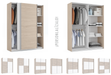 A demás, puedes personalizar los rectángulos de las puertas pudiéndolos colocar en la posición que se desee.Suave guiado de las puertas mediante ruedas con rodamientos Perfiles/tiradores de aluminio 2 barras aluminio Trasera interior blanca para mayor luminosidad Material: aglomerado de partículas y melamina de alta densidad Necesita montaje. No se incluye las siguientes herramientas: destornillador, martillo, cinta americana, metro...