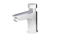 Grifo temporizado ecológico de un agua para instalación sobre repisa con cuerpo de latón cromado.