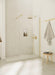 Mampara de 1 hoja fija de la serie FADO de Profiltek. Perfil Oro y vidrio transparente.