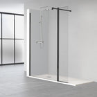 - Mampara de 1 hoja fija y 1 hoja abatible para ducha de vidrio transparente de seguridad de 6mm.