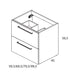 - Mueble de baño suspendido de 2 cajones con cierre amortiguado, guía Indaux y con interiores acabado en gris. Tiradores metálicos. Frente y laterales fabricados en tablero de partículas laminado de 16 mm.