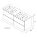 Mueble de baño suspendido formado por 2 muebles de 2 cajones cada uno con cierre amortiguado con interiores acabado gris antracita onix. Tirador tipo uñero integrado en el mueble. Frente y laterales fabricados en tablero de partículas laminado de 16 mm (clase E-1) con cantos PVC.