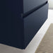 Mueble de baño suspendido de 2 cajones con cierre amortiguado con interiores acabado gris antracita onix. Tirador tipo uñero integrado en el mueble. Frente y laterales fabricados en tablero de partículas laminado de 16 mm (clase E-1) con cantos PVC.