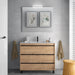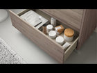 Mueble de baño con tres cajones de cierre amortiguado. Frente y laterales fabricados en tablero laminado de 16 mm con cantos en PVC. Interior color nude textura cuero.