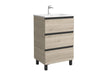 - Mueble de baño 3 cajones con cierre amortiguado para maximizar el espacio de almacenaje. Patas de 10cm para mejor limpieza debajo del mueble. Interiores: acabado Gris Onix de fácil limpieza. Tirador tipo uñero integrado en el frente del mueble, no se ensucian. Fabricados en MDF (clase E-1) con cantos en PVC resistentes a la humedad del baño.