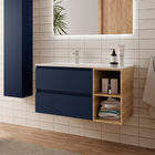 SALGAR BEQUIA Mueble de Baño con Lavabo 2 Cajones 2 Huecos Derecha Azul Mate Roble