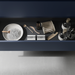 Disponible en varias medidas, sin coqueta o con 1 o 2 coquetas con lavabo integrado de encimera o encimera y lavabo de posar, multiplica las posibilidades, haciendo la colección mucho más flexible.